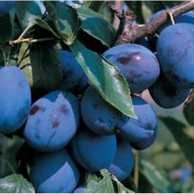 • Плоди: середні та великі (50–70 г), округло-овальні, темно-фіолетові з восковим нальотом. М’якуш жовтувато-зелений, соковитий, солодко-кислий, з приємним ароматом. Кісточка відділяється легко.