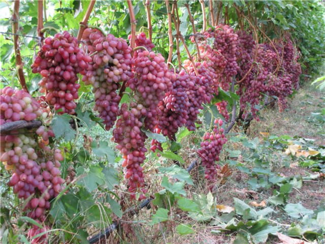 Грона щільні, масою до 800–1000 г, ягоди овальні 8–10 г, м’якоть соковита та солодка з ніжним ароматом.