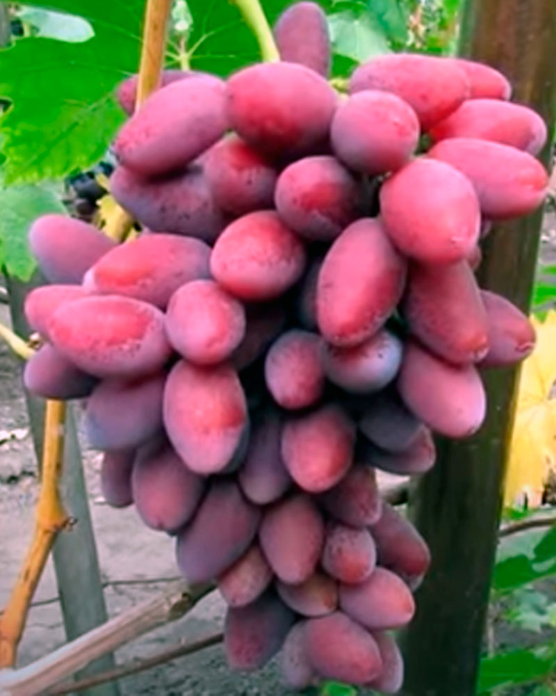Грона великі, масою до 900–1200 г, ягоди овальні 12–14 г, м’якоть щільна, соковита та солодка з насиченим ароматом.
